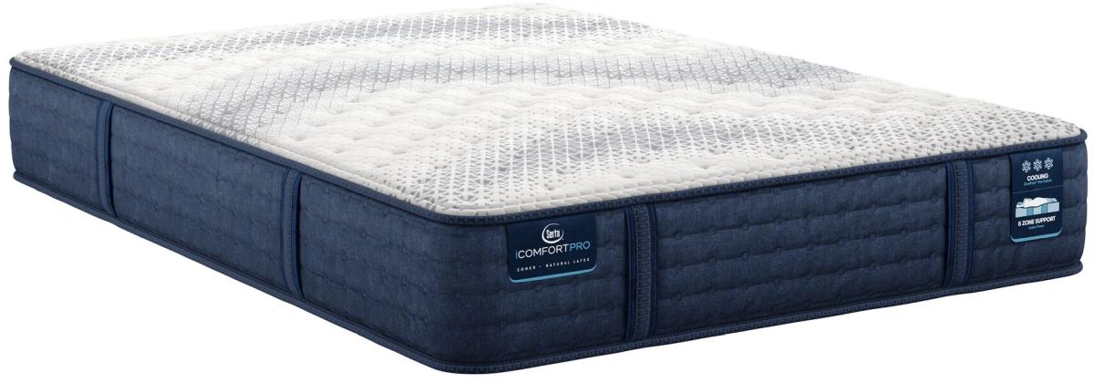 Serta iComfortPro, Serta's most advanced mattress that features layers of premium latex foam in a 5-zone comfort system. The new iComfortPro features 5 support zones made from natural latex that retains its shape to promote better spinal alignment, while contouring to your body and providing even pressure relief. Why latex? Latex foam comes from rubber trees, making it naturally durable, non-toxic, breathable with contouring comfort and pressure relief where you need it most. Additionally, unlike synthetic foams, latex foam doesn’t trap heat. Instead, it is naturally temperature regulating and breathable. The quilted top features a cool-to-the-touch fabric designed to help you fall asleep more easily.